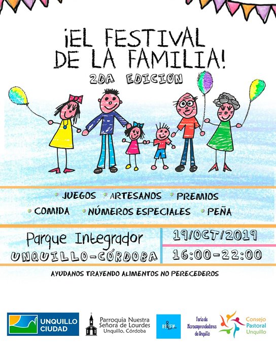 Organizan: Pquia. Ntra. Sra. de Lourdes, Consejo Pastoral Unquillo y Feria Microemprendedores. Acompaña: Municipalidad de Unquillo