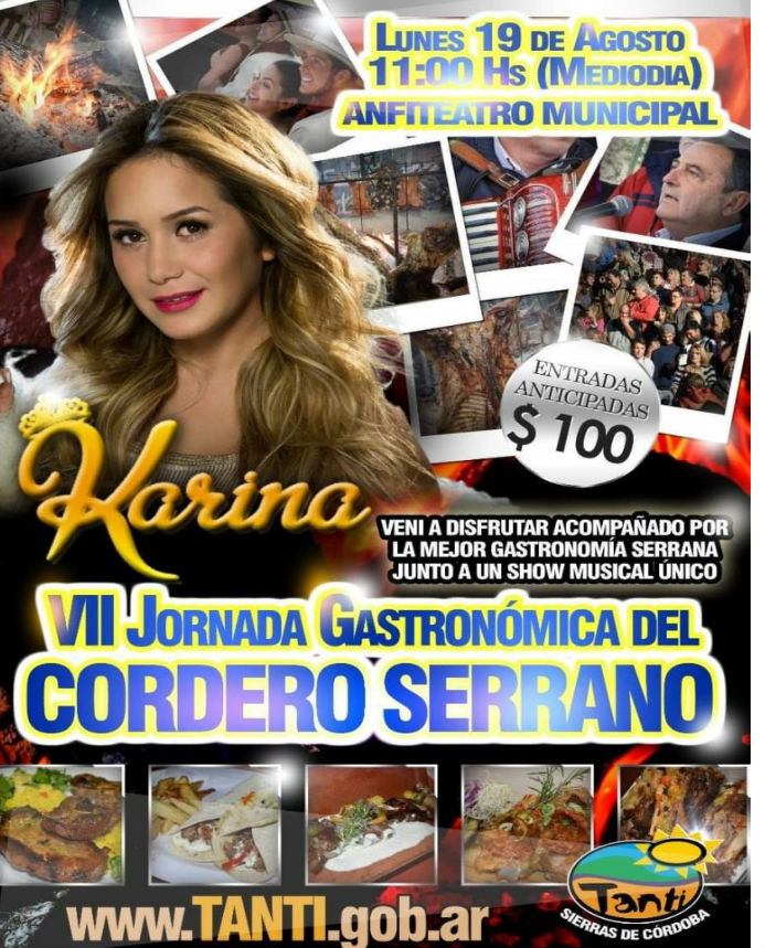 Luis Azar, Intendente de la localidad serrana de Tanti anunció la presencia de La Princesita Karina en las próximas Jornadas Gastronómicas del Cordero Serrano”, previstas para el mes de agosto.