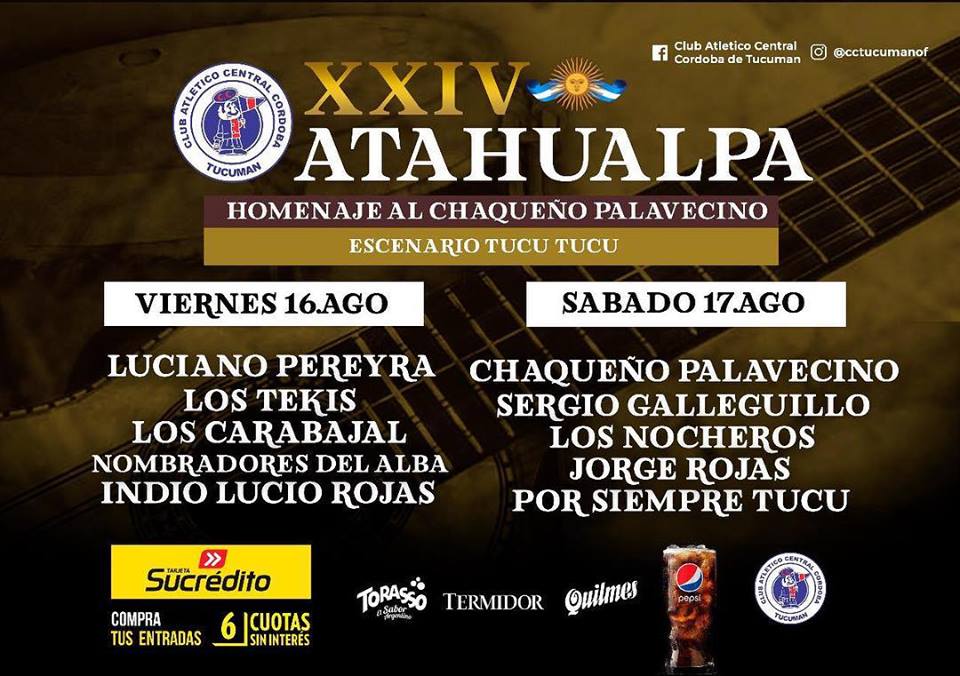 ANTICIPO de lo que será el XXIV ATAHUALPA. Se realizará los días viernes 16 y sábado 17 de agosto en el Club Central Córdoba de Tucumán. La edición 2019 del festival se hará en homenaje al Chaqueño Palavecino.