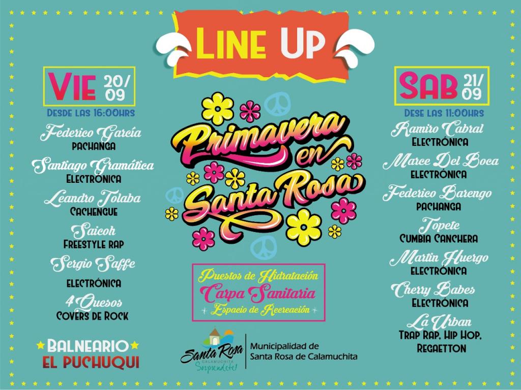 La Municipalidad de Santa Rosa de Calamuchita realizará dos jornadas en un imponente marco natural para vivir la primavera en el corazón del Valle de Calamuchita. Se desarrollará desde el viernes 20 al sábado 21 de septiembre y tendrá lugar en el Balneario El Puchuqui, a partir de las 16 horas del Viernes, mientras que para el sábado 21 las actividades recreativas comenzarán desde las 11 horas.