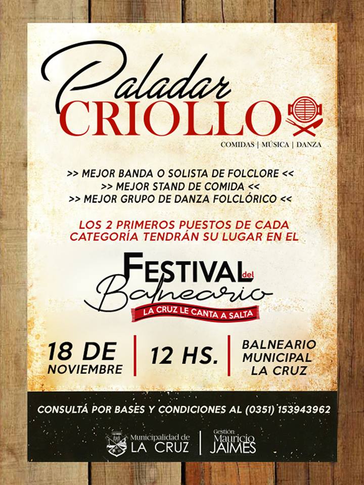 La Fiesta del Paladar Criollo 2018 tendrá lugar en la localidad de La Cruz,provincia de Córdoba.