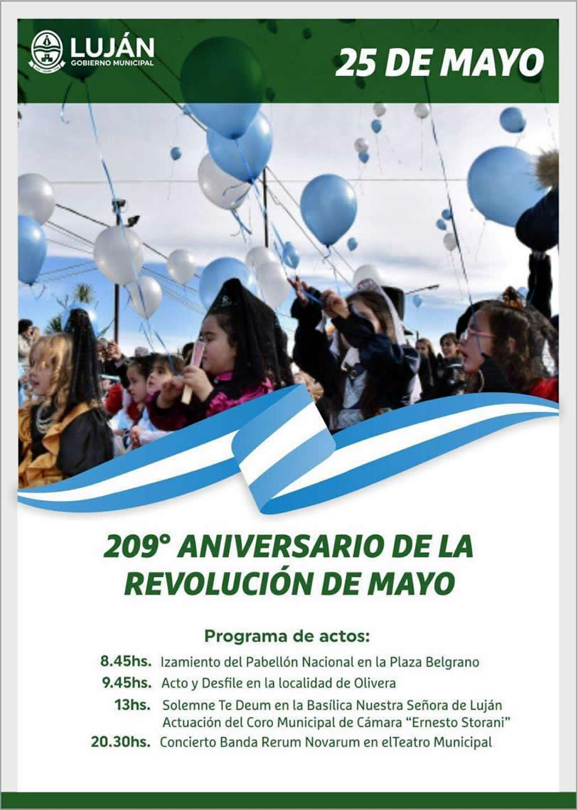 - 13hs. se celebrará el Solemne Te Deum en la Basílica Nuestra Señora de Luján, con la participación del Coro Municipal de Cámara “Ernesto Storani”.