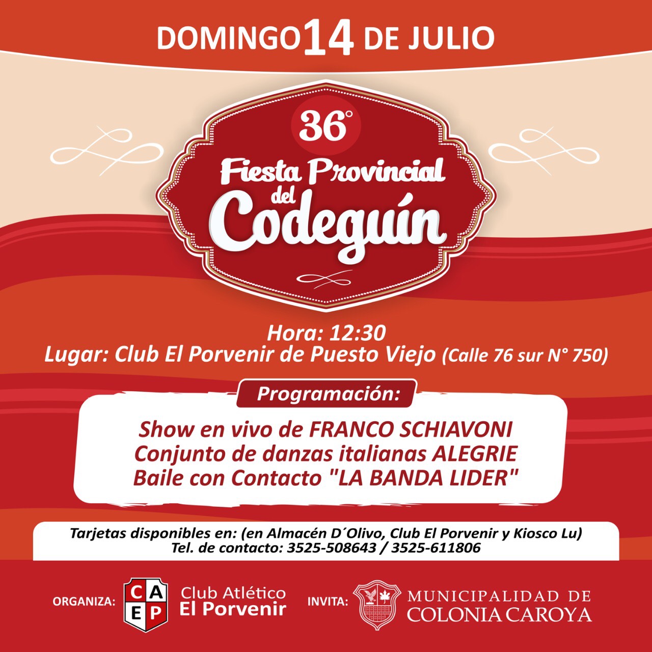 En su 36° edición llega al Club el Porvenir de Puesto Viejo (ubicado sobre la calle sur al 750), el evento gastronómico más sobresaliente del norte cordobés: a “Fiesta Provincial del Codeguín”, la misma tendrá fecha el día domingo 14 de julio, desde las 12:30 horas.