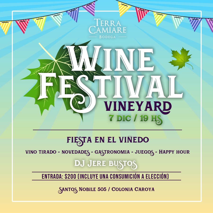 La Bodega Tierra Camiare invita a la primera edición de Winefestival en Colonia Caroya, a realizarse el Sábado 07 de Diciembre a partir de las 19:00.